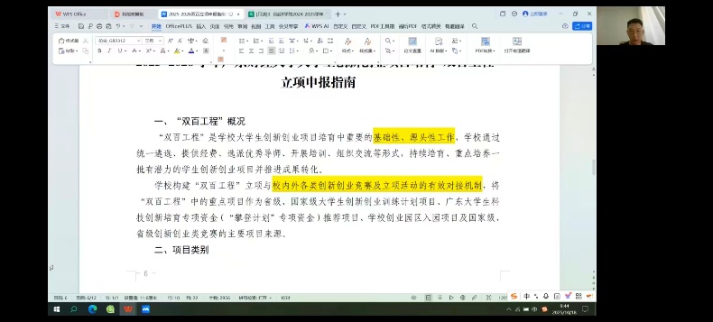 本次宣讲会围绕“双百工程申报”核心,设置三大关键环节,同时后续延伸多主题学术分享,全方位助力学生申报:首先由邓洋洋老师解读双百工程官方指南与申报要点,接着四位优秀同学分享从申报到结项的实战经历,最后开启互动提问环节,针对性解决大家的申报困惑。
