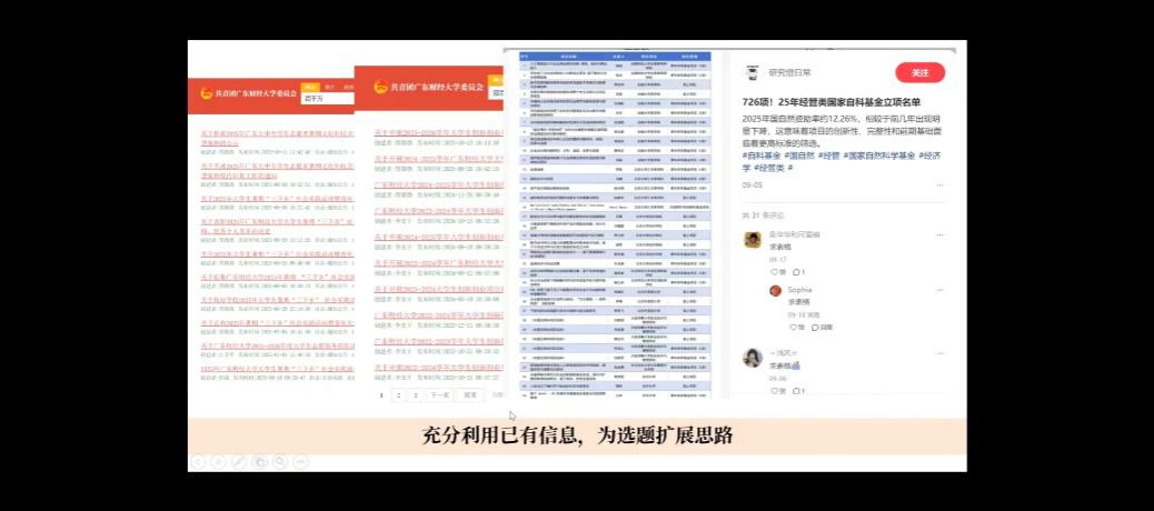 周皓阳完整梳理了从“申报立项-中期检查-结项答辩”的全流程,尤其针对大家关心的“结项难”问题给出具体建议。他强调,结项材料一定要注重逻辑闭环,比如研究结论要与最初的研究目标对应,数据支撑要扎实且可追溯,避免出现“目标与结论脱节”“数据来源不清晰”等问题。在答辩环节,他还分享了PPT制作技巧——页面设计要简洁明了,重点突出核心数据与创新点,同时提前模拟答辩场景,熟悉可能被问到的问题,比如“项目的局限性是什么”“后续如何优化”,做到临场不慌。