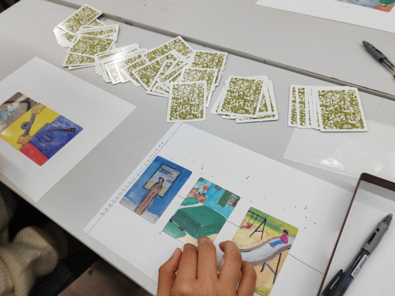 OH卡探索环节成为整场活动的“心灵密钥”。小组内,大家围绕同一张卡牌各抒己见,不同视角的解读碰撞出思维火花;随后抽取的三张卡牌,被赋予“现在的我”“成长路径”“未来的我”的特殊意义,同学们在排序与解读中梳理当下状态,勾勒未来蓝图。