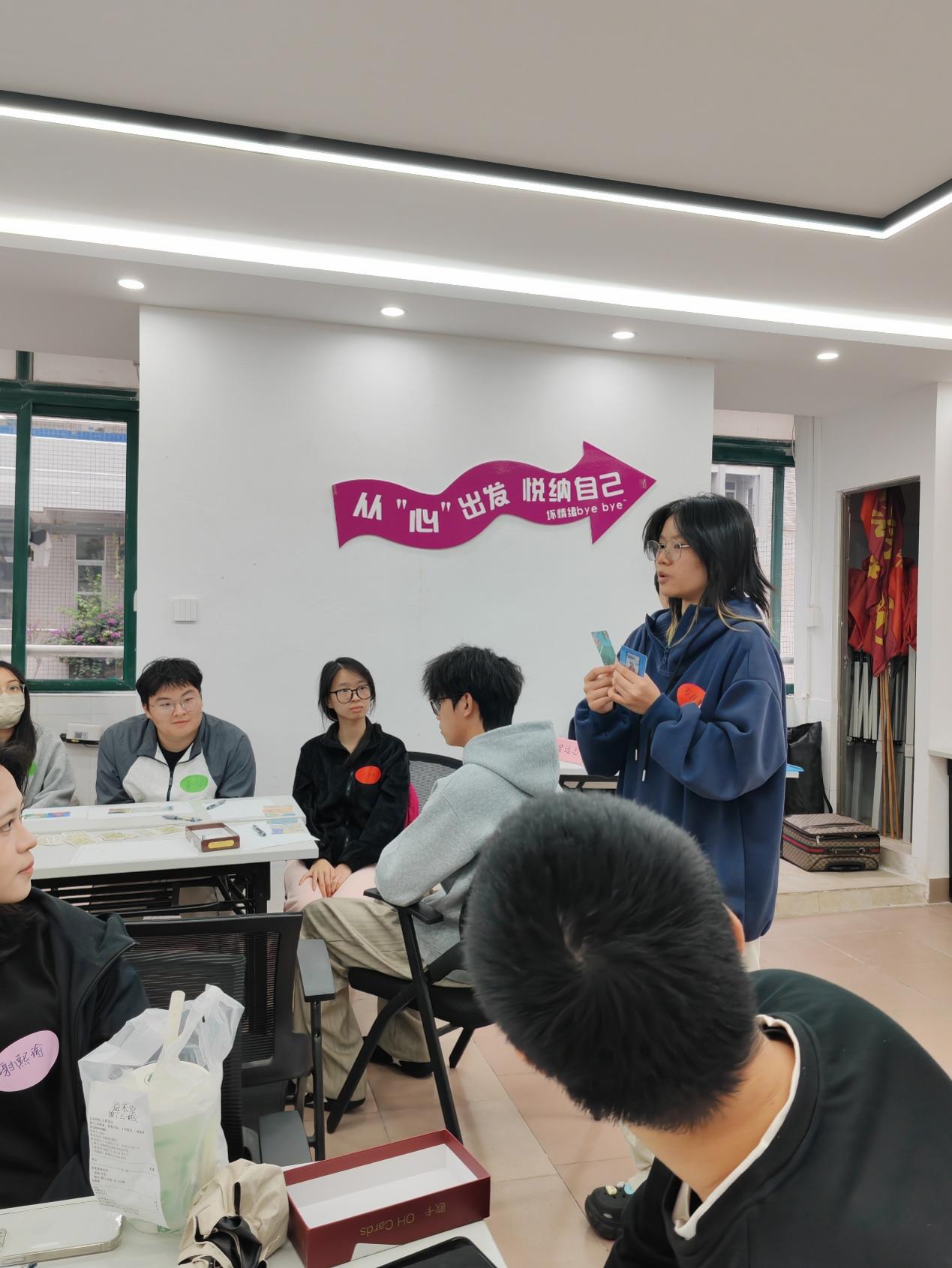 现场有两位同学主动分享了自己的卡牌组合与解读,用真诚的表达袒露内心状态,也带动着大家更勇敢地探索自我,在梳理与倾诉中完成了一场温柔的心灵对话。
