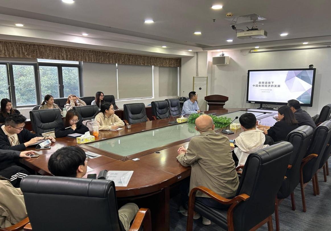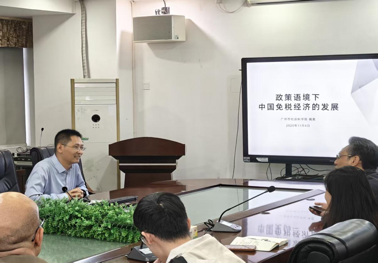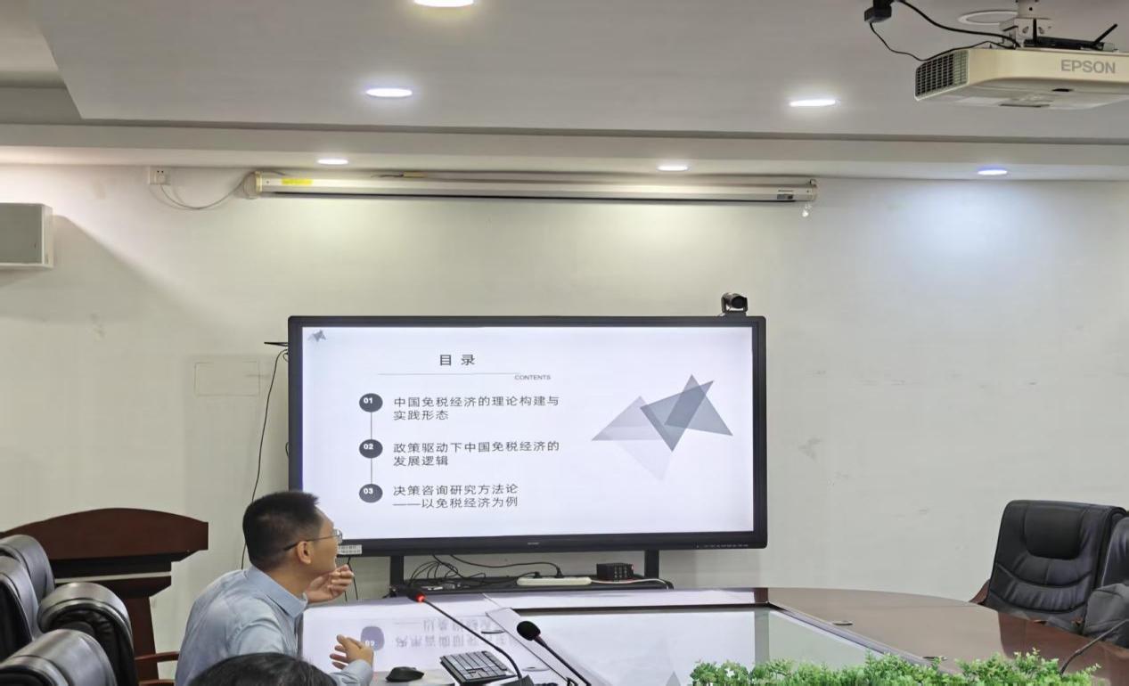 2025年11月4号,经济学院邀请广州市社会科学院国际商贸研究所研究员揭昊作题为“政策语境下中国免税经济的发展”讲座由经济学院院长聂普焱教授主持,副院长柴盈、副院长张倩男、李景海教授及多名师生参加了本次讲座。
