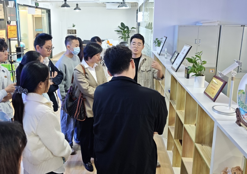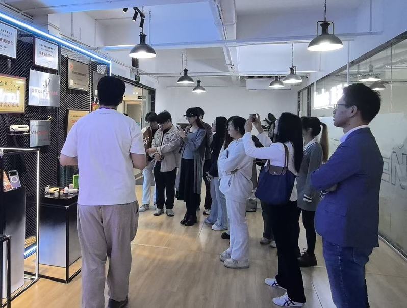师生一行在李博、胡天宇的引导下,依次参观产品展示区、办公区域及企业文化墙。李博、胡天宇详细介绍了公司核心产品的研发理念与技术优势,展现了对产品品质的极致追求。办公区域开放协作的工作氛围、文化墙呈现的企业价值观与员工成长案例,让师生对企业运营模式与人才培养理念形成直观认知,为后续校企合作奠定基础。