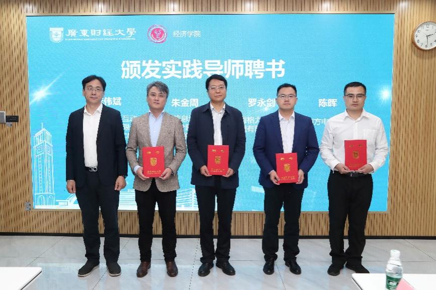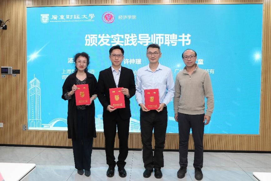 在实践导师聘任仪式环节,校方及经济学院领导为19位来自数字科技、数字金融投资、智能制造等前沿领域的业界专家与企业家代表颁发了聘书。这批实践导师阵容强大,囊括广州奇异果互动科技股份有限公司创始人李伟斌、中国信息通信研究院南方分院副院长朱金周、珠海格力金融投资管理有限公司投资经理罗永剑等行业翘楚,他们将凭借深厚的产业积淀与丰富的实践经验,为数字经济专业硕士提供全方位的实践指导、产学研项目合作支持与精准的职业发展引领。