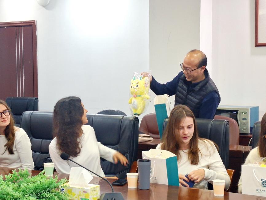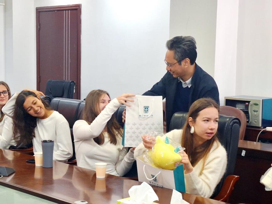 一段精心制作的回忆视频,将欢送会的氛围推向高潮。视频里收录了交换生们四个月来的美好瞬间:学术研讨会上同学们热烈交流的场景,校园文化活动中尽情欢笑的身影,外出实践时好奇探索的眼神……每一个瞬间都承载着深深的师生情、同窗谊,让现场不少人动容;视频最后是老师们的暖心寄语——老师们回顾了与交换生相处的点滴,肯定了他们的努力与进步,更送上了沉甸甸的祝福。
