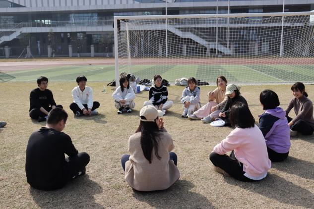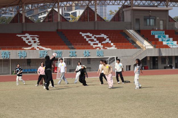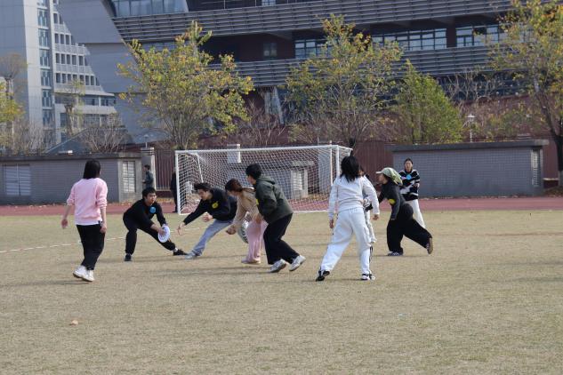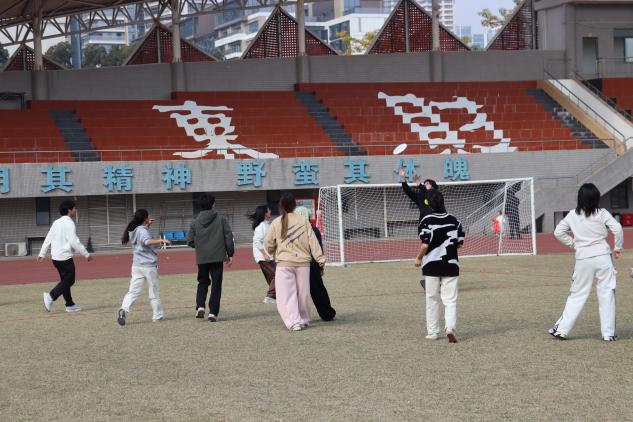 在掌握基础技巧后,全体参与者通过抽签分为“蓝队”与“黄队”。两队迅速展开战术讨论与热身练习,一场“友谊第一、比赛第二”飞盘对抗赛正式展开。比赛过程中,同学们积极跑动、默契传接,每一次精准的传递与精彩的接盘都引来阵阵欢呼。场上既有为得分而响起的掌声,也有为失误队友送上的鼓励。同学们并肩协作,战术配合与轻松互动交织,充分展现了团队精神与运动热情。最后,比赛在双方势均力敌、打成平局的友好氛围中圆满落下帷幕。
