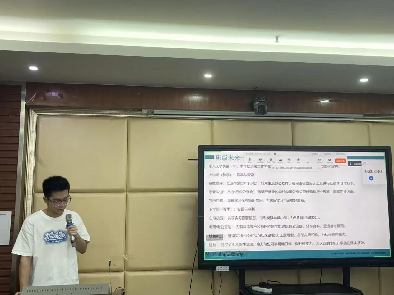 学生骨干方雅婷、何家乐结合自身履职经历,从班委工作、班级建设与个人成长等角度分享心得,为现场同学提供宝贵经验,凝聚共识,激发动力。