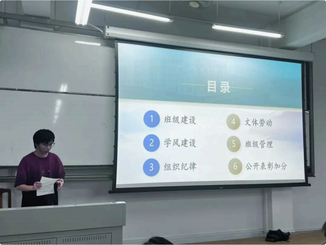 班委述职亮答卷 ,凝心聚力启新程。经济学院始终重视班团组织建设 ,通过定期述职、专题培训、考核评优等机制 ,打造了一支政治坚定、能力过硬的学生骨干队伍。本次大会既是对 2023级班委 2024―2025 学年第一学期工作的全面检验 ,也为新学期班级发展指明方向。与会班委纷纷表⽰ ,将以此次会议为契机 ,以更加饱满的热情投入新学期工作 ,为创建优良班风学风、服务同学成长成才贡献青春力量。
