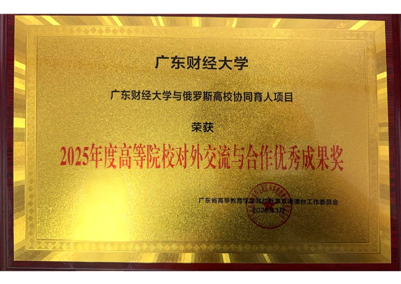 我院副院长张倩男副教授申报的《广东财经大学与俄罗斯高校协同育人项目》以及副院长柴盈教授申报的《传播中国经济成功实践:经济学科深化国际合作创新研究》两项成果喜获2025 年度高等院校对外交流与合作优秀成果奖。